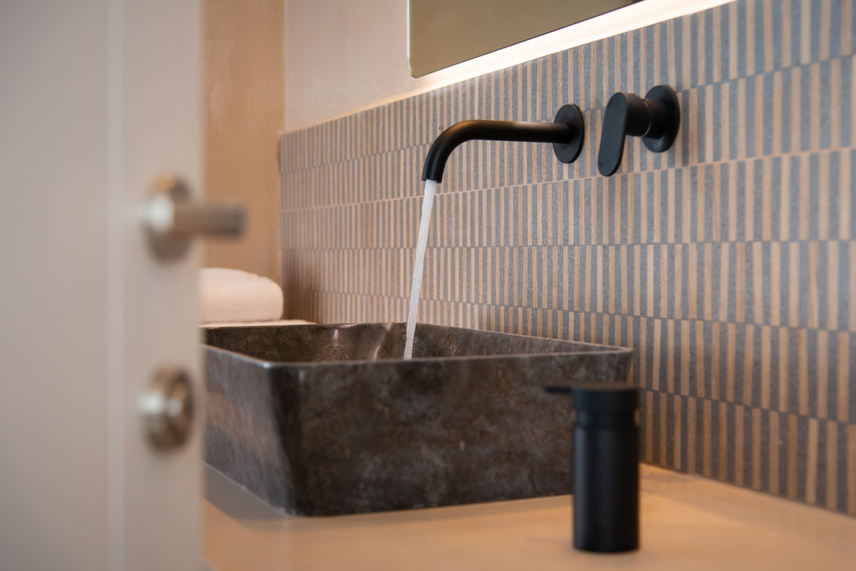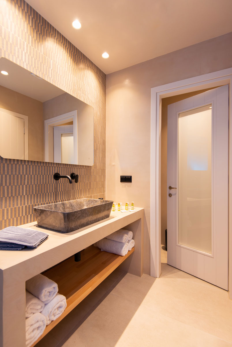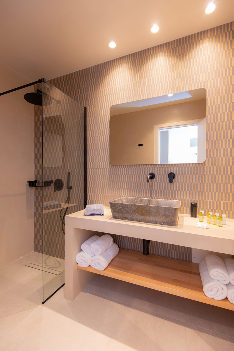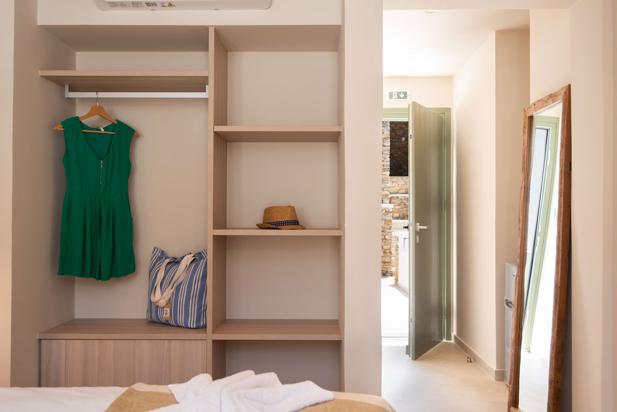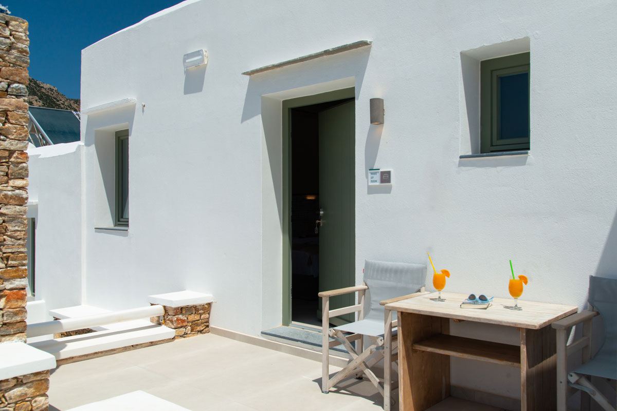 Μοντέρνα δίκλινα δωμάτια με ιδιαίτερες διακοσμητικές πινελιές και άνετα διπλά κρεβάτια. Διαθέτουν μικρό ψυγείο, καφετιέρα για εσπρέσο, μπάνιο με ντουζιέρα-βροχή ενώ κάποια είναι εξοπλισμένα και με καναπέ. Στο σκιερό μπαλκόνι μπορείτε να απολαύσετε τη θέα στη θάλασσα, στην παραλία των Καμαρών και στο ηλιοβασίλεμα.